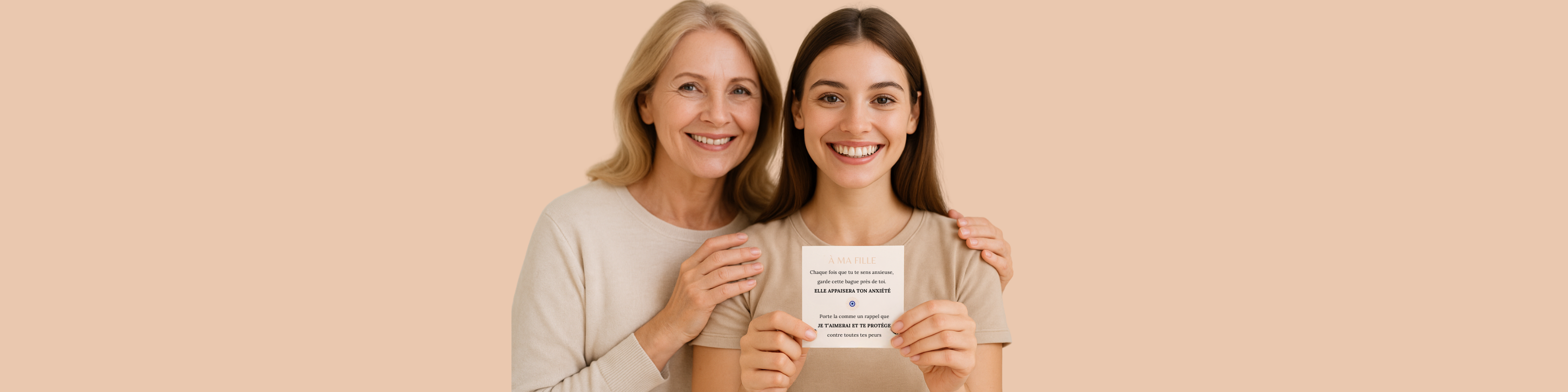 Oui. La bague est livrée avec une carte au message touchant, écrit par une mère pour sa fille. C’est bien plus qu’un bijou : un rappel d’amour, de protection et de réconfort à garder toujours près de soi.